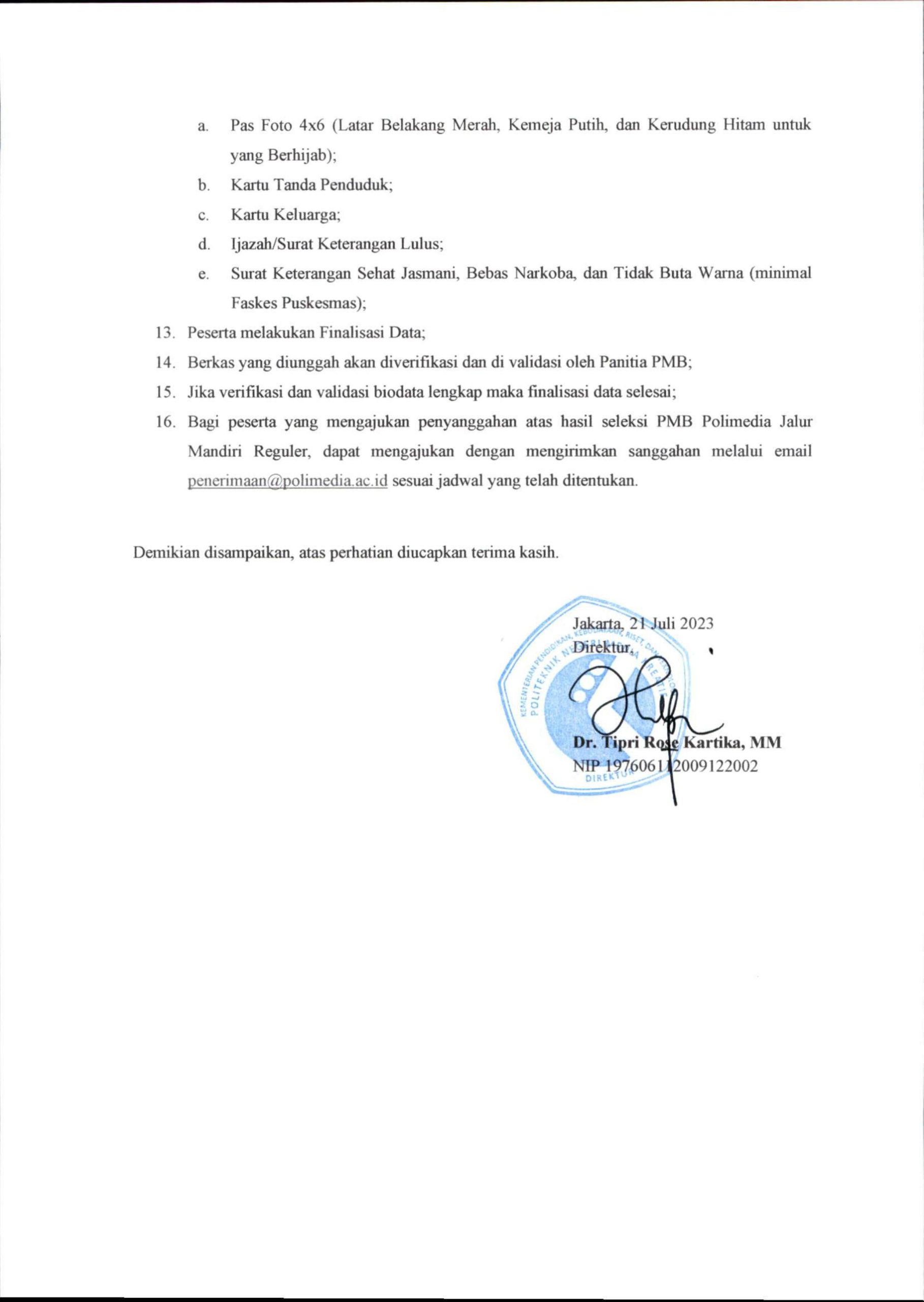 Mekanisme Registrasi Daftar Ulang Calon Mahasiswa Baru Polimedia Jalur Mandiri Reguler 2023
