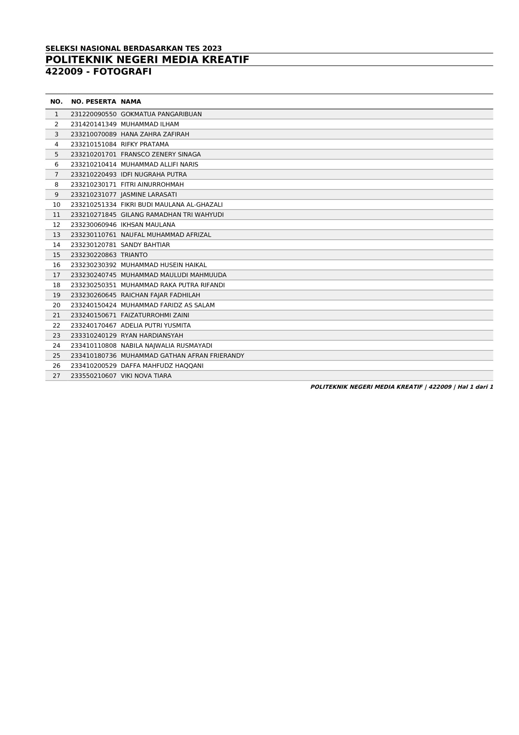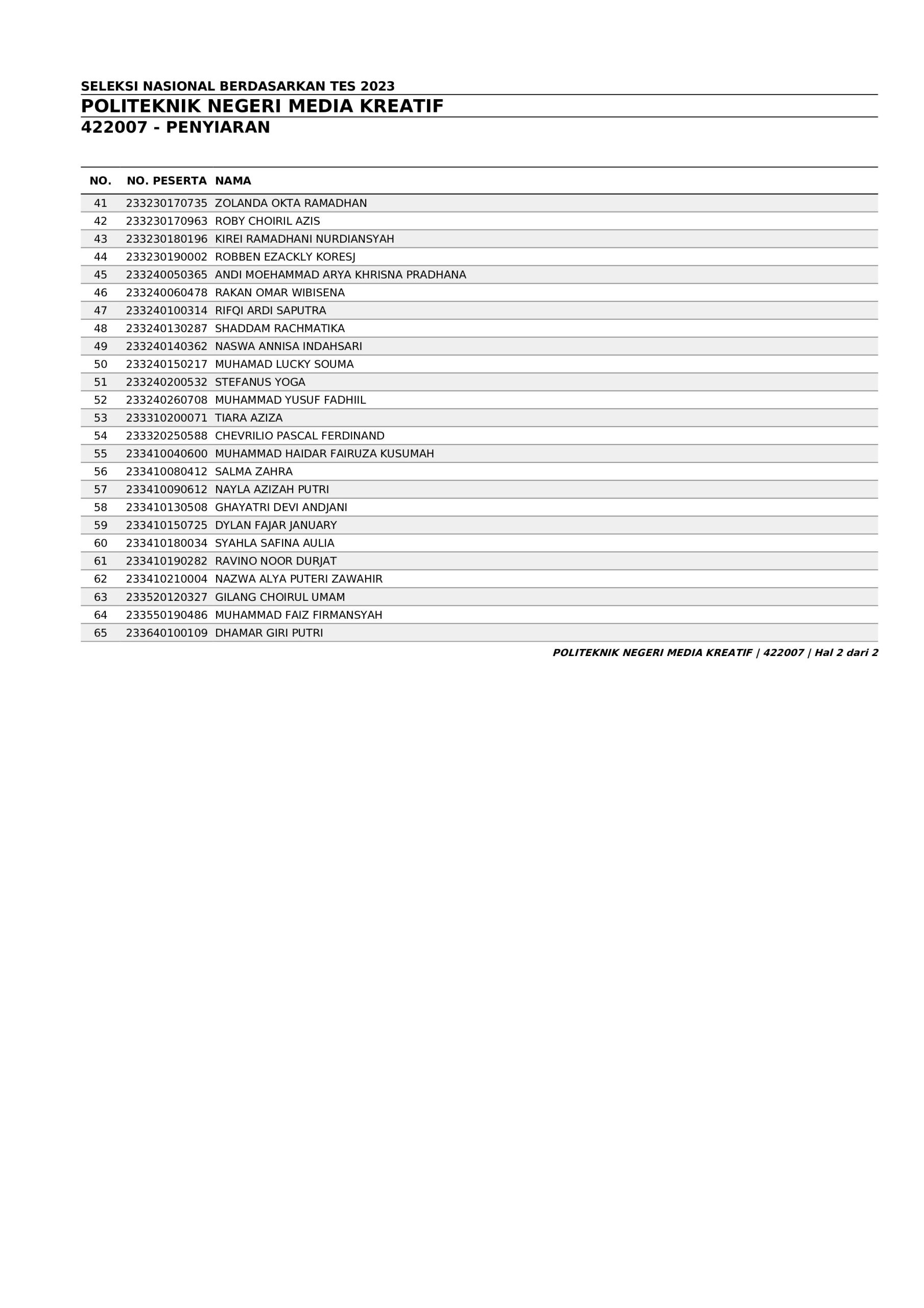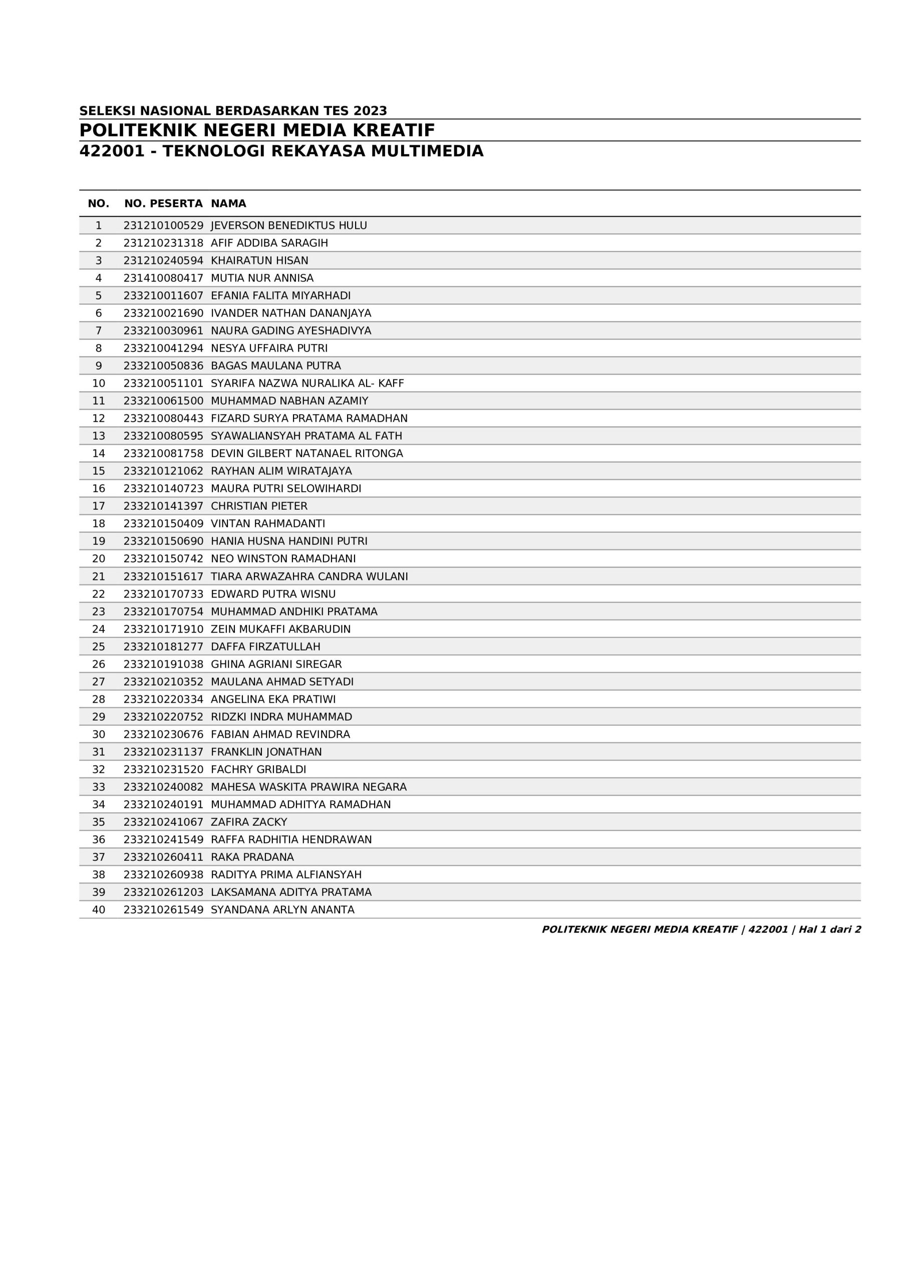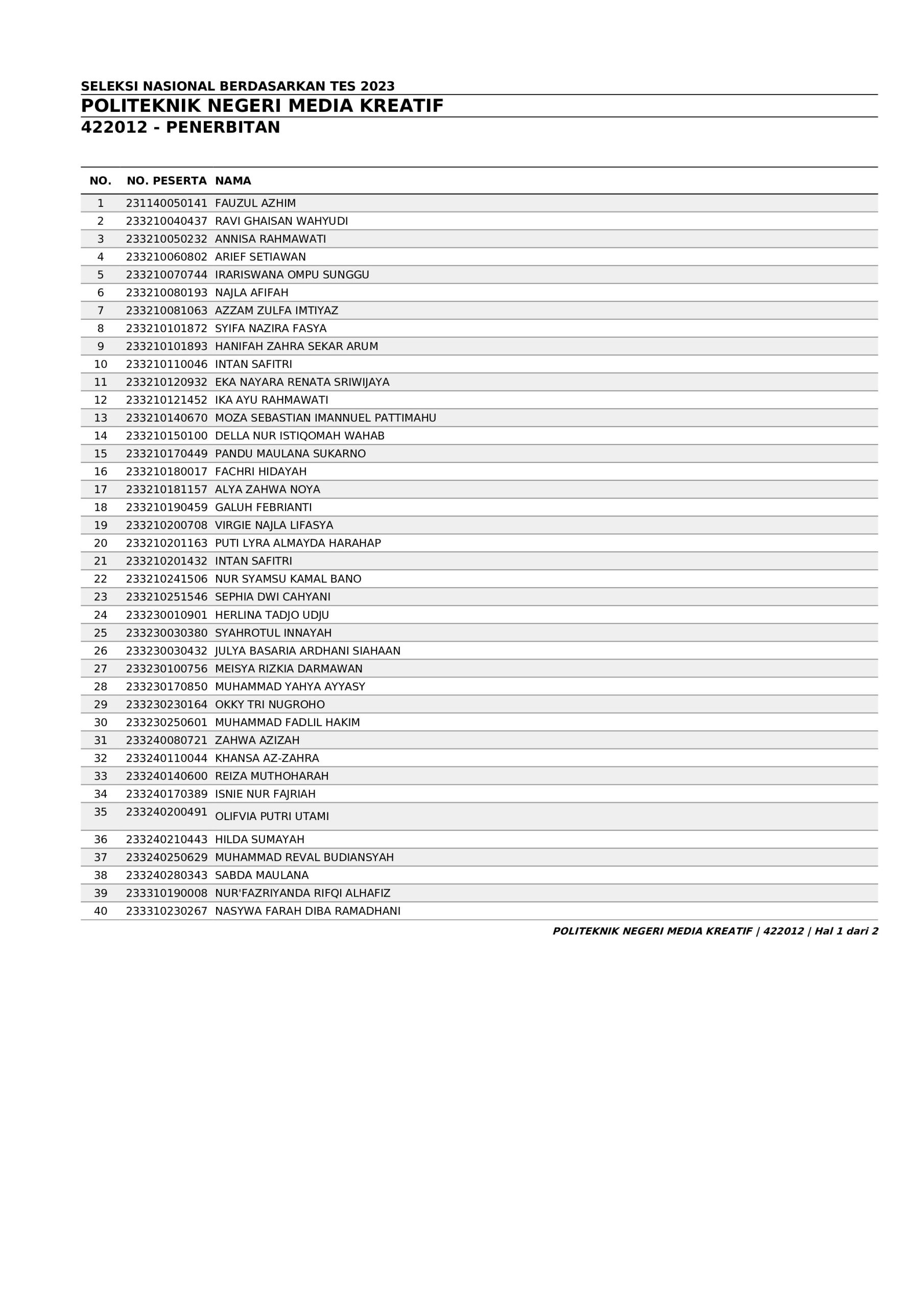 Pengumuman Hasil Penerimaan Calon Mahasiswa Baru Polimedia Jalur SNBT 2023