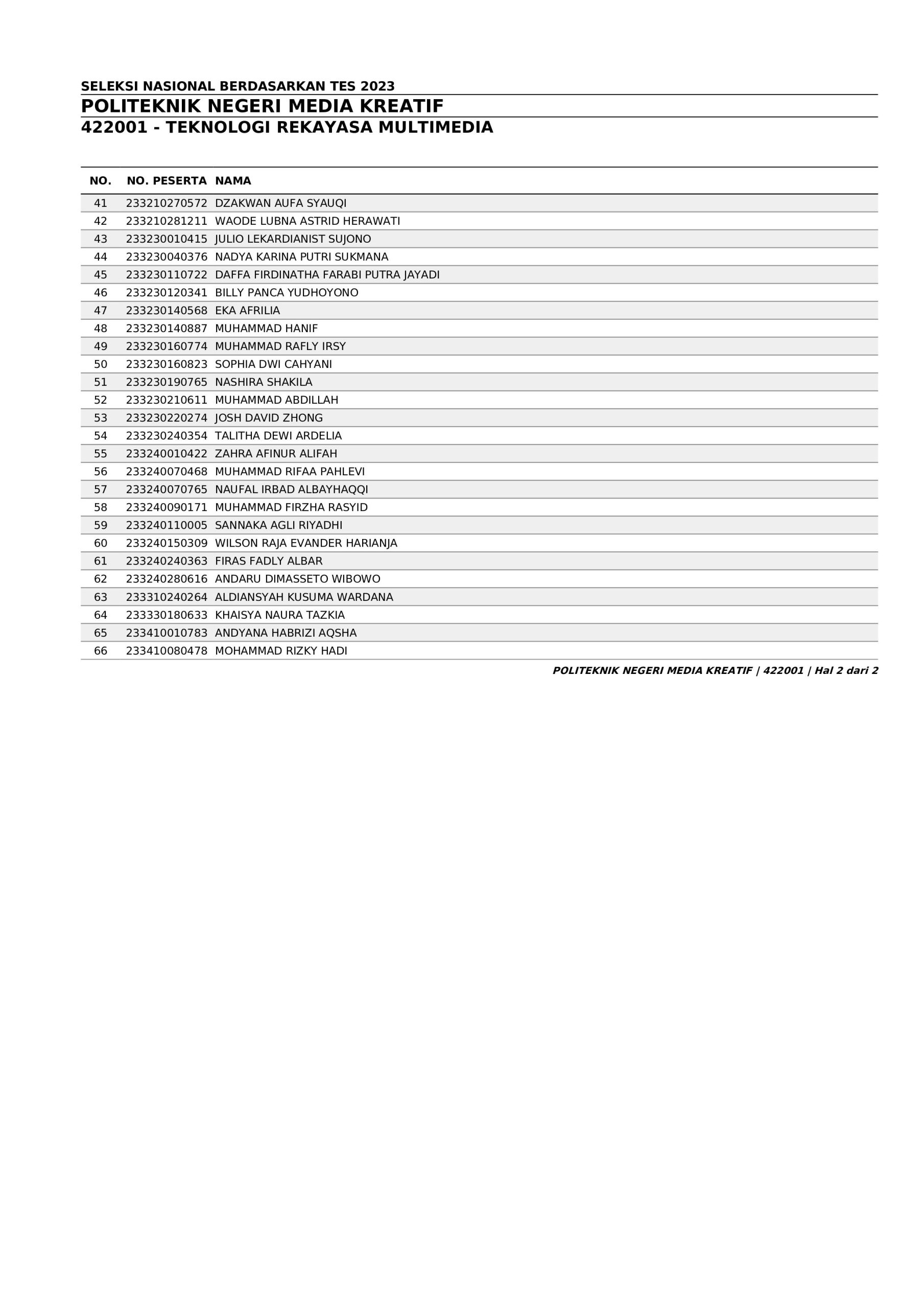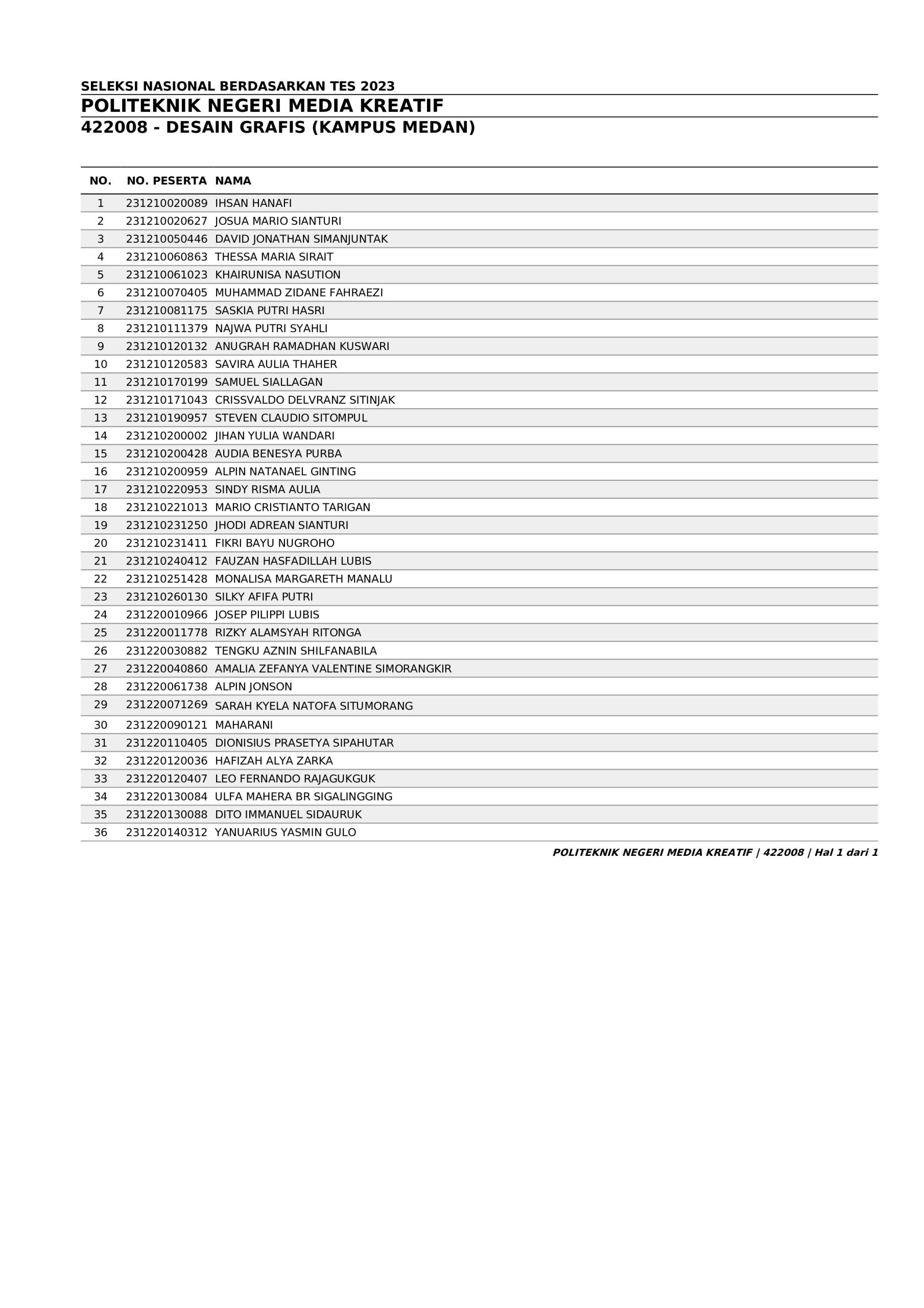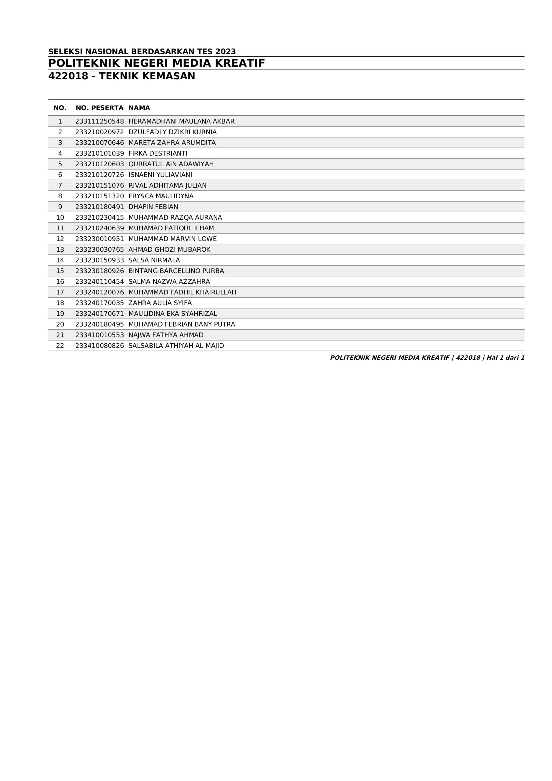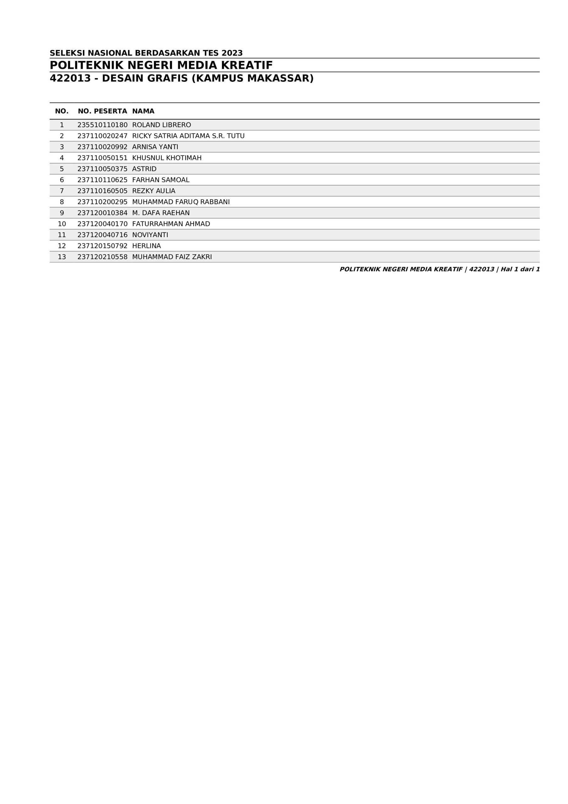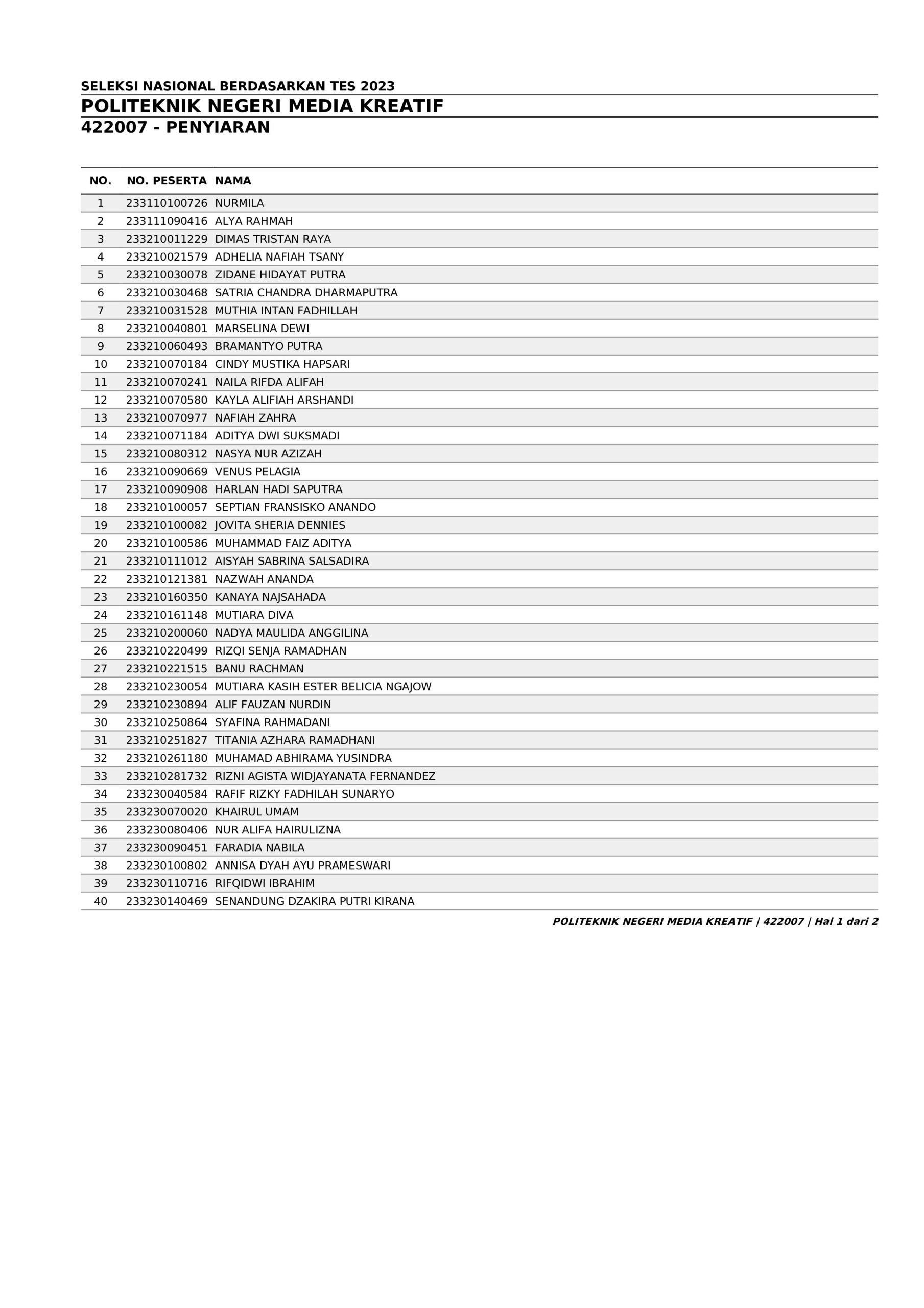 Pengumuman Hasil Penerimaan Calon Mahasiswa Baru Polimedia Jalur SNBT 2023