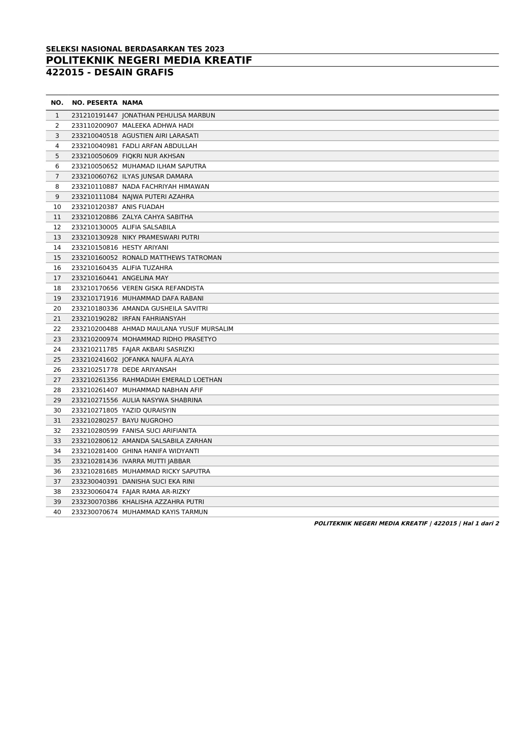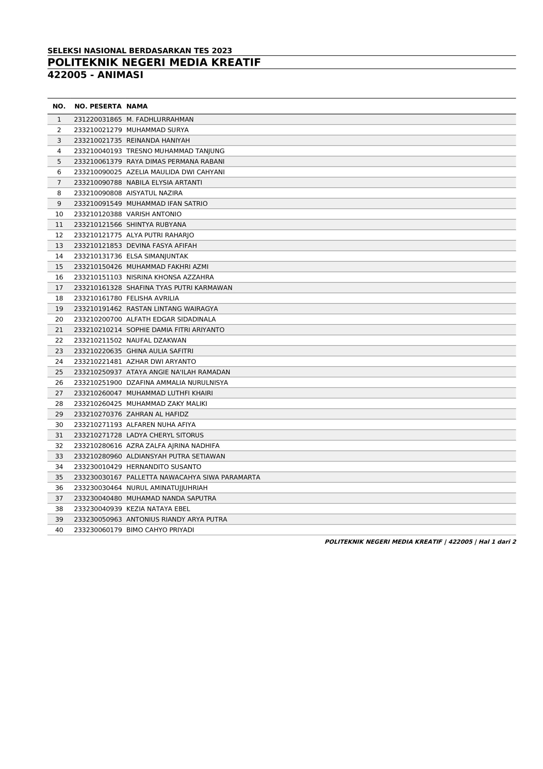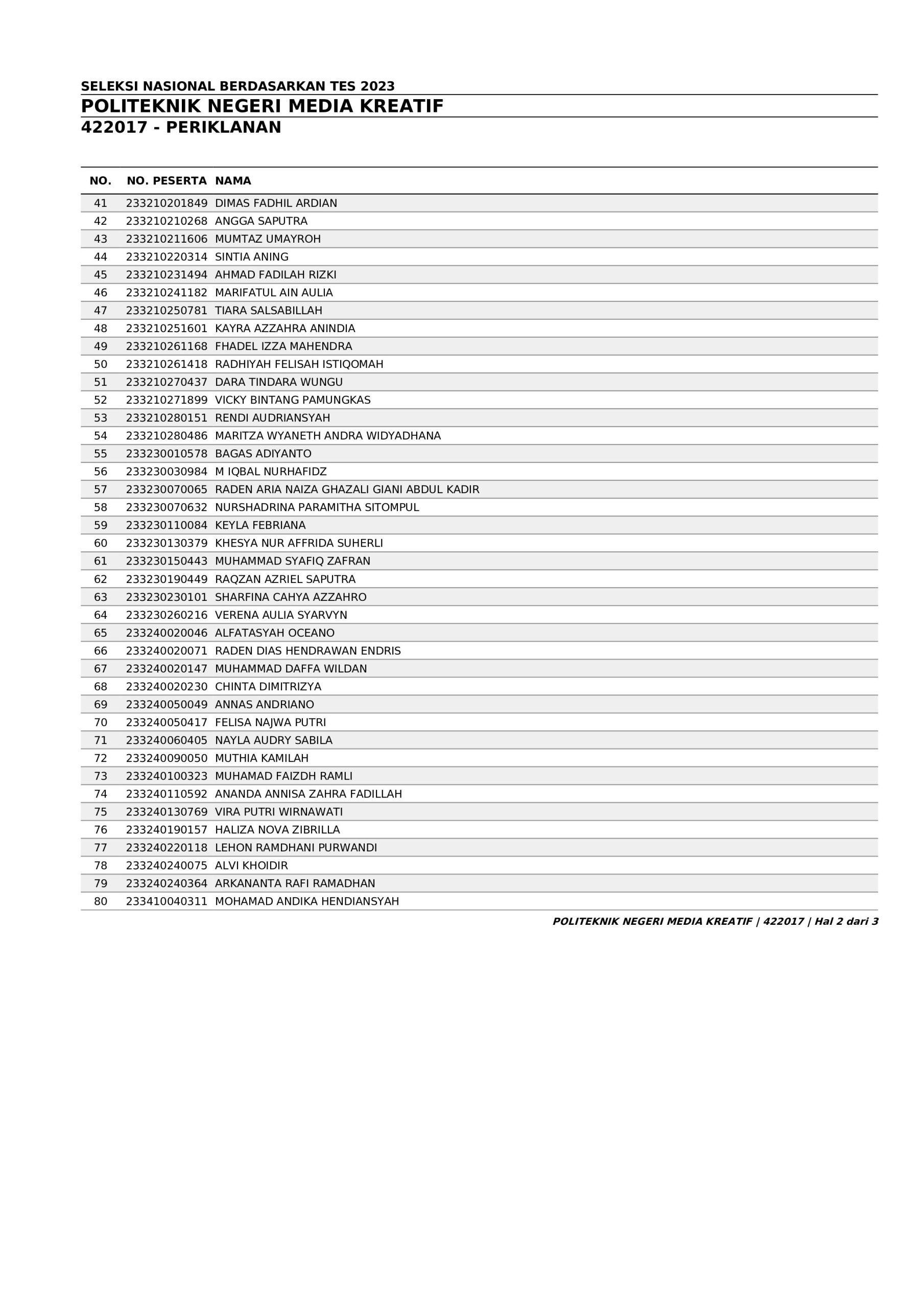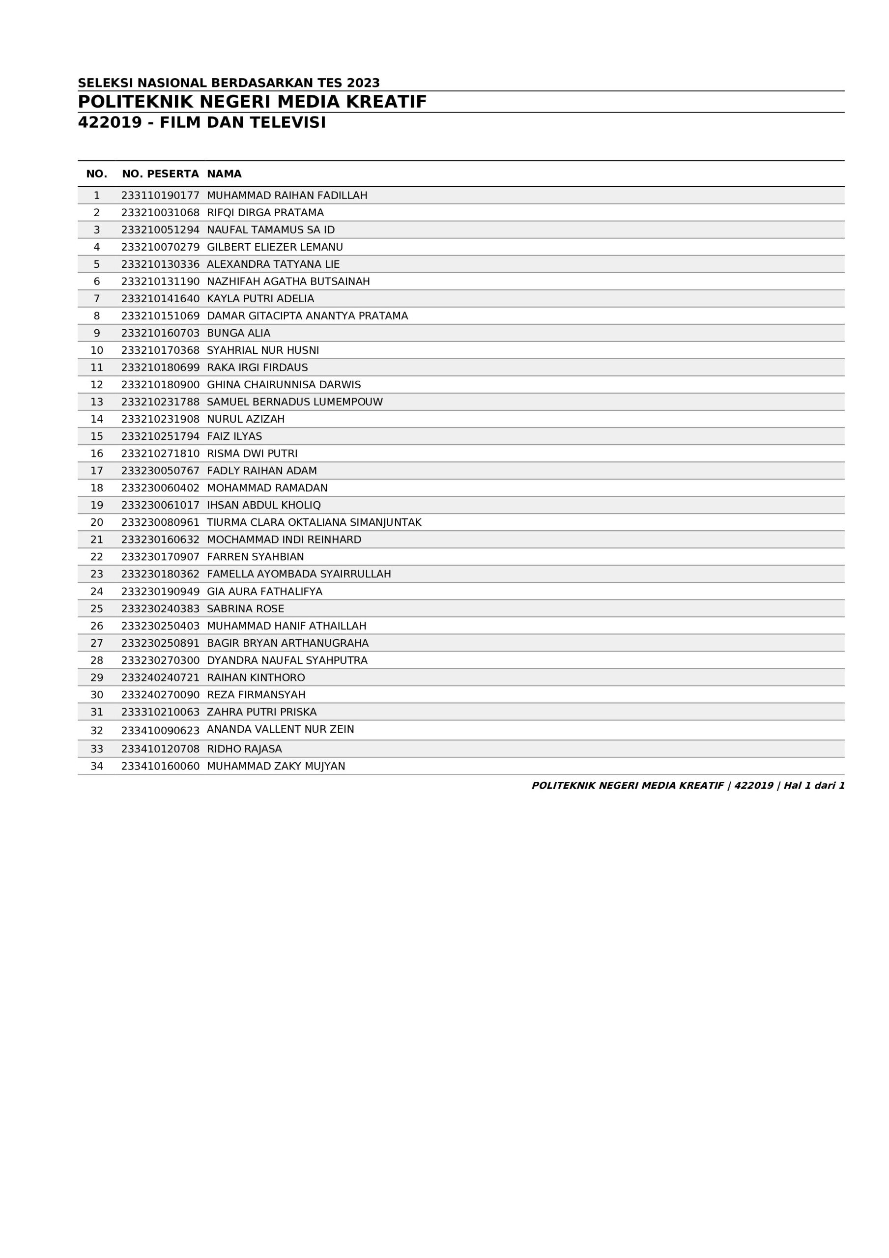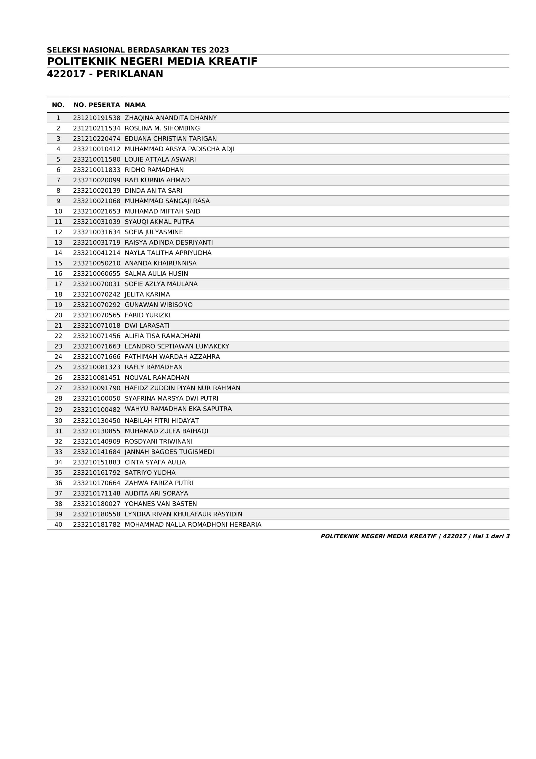 Pengumuman Hasil Penerimaan Calon Mahasiswa Baru Polimedia Jalur SNBT 2023