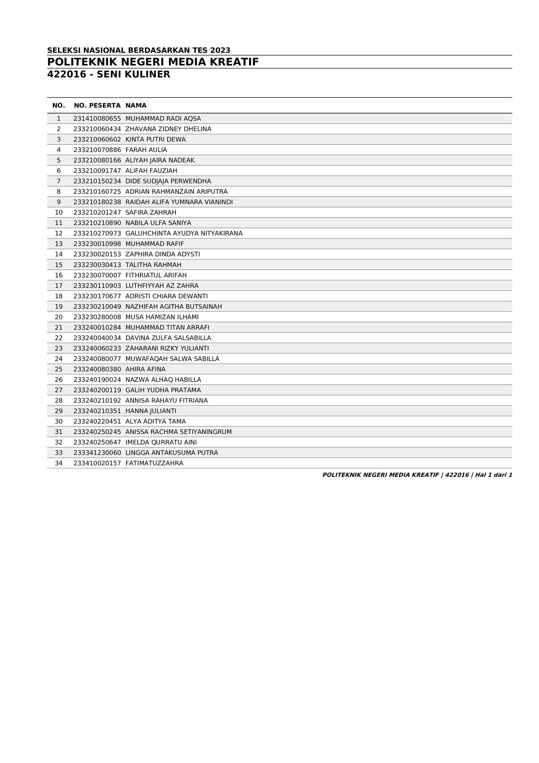 Pengumuman Hasil Penerimaan Calon Mahasiswa Baru Jalur Seleksi Nasional Berdasarkan Test (SNBT) Program Diploma (D3) dan Sarjana Terapan (D4)