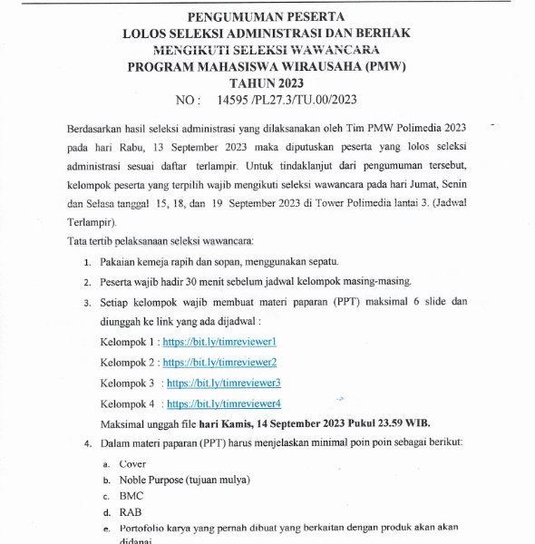 Pengumuman Lengkap Dapat Di Unduh Pada Tautan Berikut