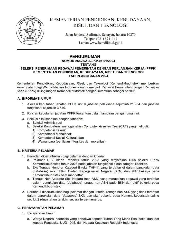 Pengumuman Seleksi Penerimaan PPPK Tahun 2024