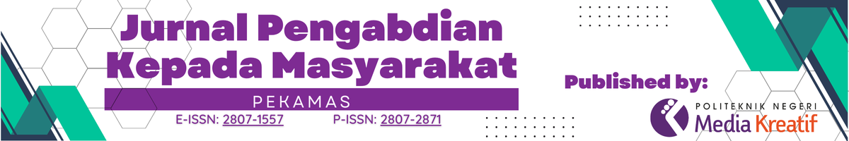 merupakan jurnal yang ditujukan untuk diseminasi hasil pengabdian kepada masyarakat dari para dosen dalam pelaksanaan Tri Dharma Perguruan Tinggi. PEKAMAS menerima manuskrip atau artikel dalam bidang riset terapan dan pengabdian masyarakat dari berbagai kalangan akademisi dan peneliti baik nasional maupun internasional. Jurnal PEKAMAS diterbitkan oleh Pusat Penelitian dan Pengabdian kepada Masyarakat (P3M) Politeknik Negeri Media Kreatif yang diterbitkan dua kali dalam satu tahun, setiap bulan Juli dan Desember.