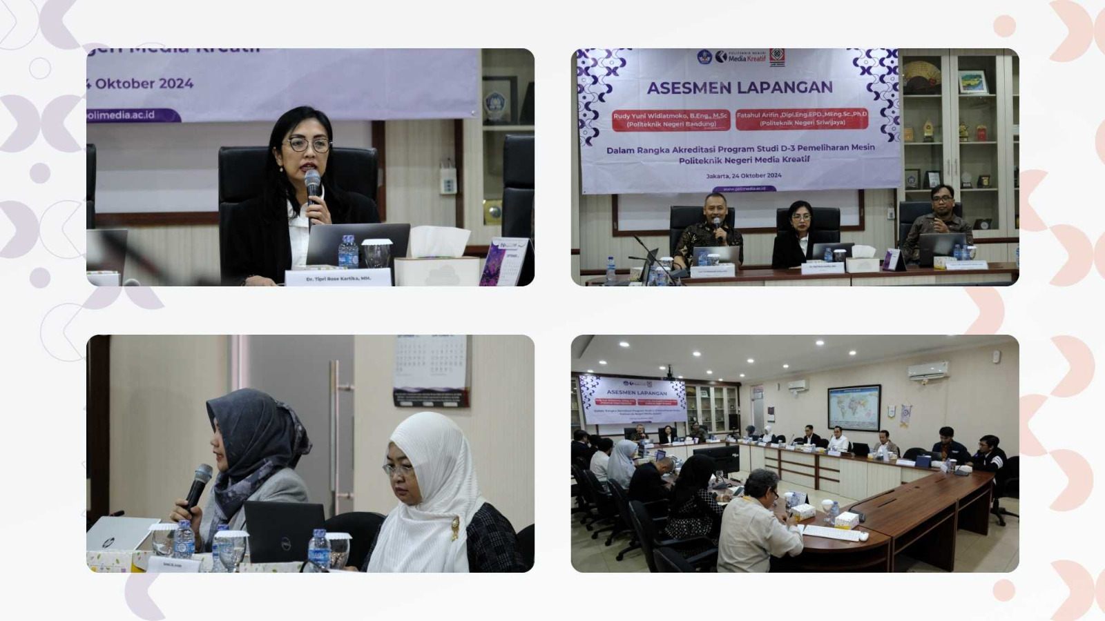 Jakarta, 23 Oktober Program Studi Pemeliharaan Mesin, Politeknik Negeri Media Kreatif (Polimedia), melaksanakan kegiatan akreditasi di Ruang Rapat A.26, Gedung A, Polimedia Jakarta. Kegiatan ini merupakan langkah penting dalam penilaian dan asesmen lapangan untuk memperoleh sertifikasi akreditasi program studi pada jenjang Diploma 3 pendidikan vokasi.