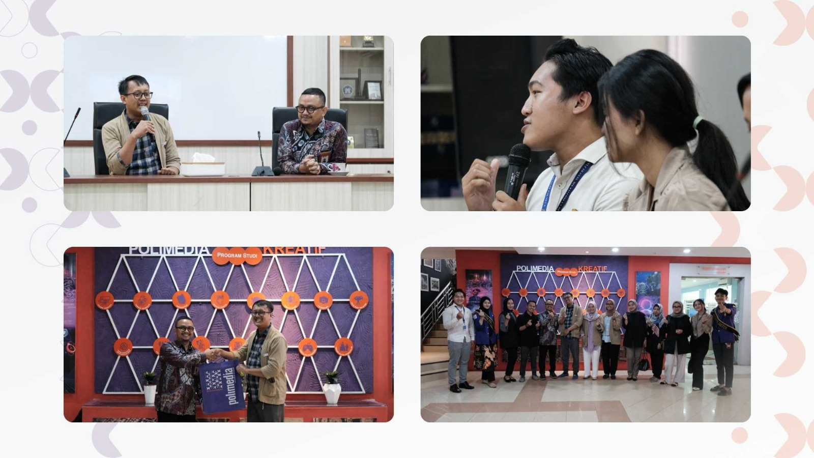 Jakarta – Dalam rangka studi banding atau benchmark duta kampus dan ruang lingkup kehumasan, Polimedia menerima kunjungan Politeknik Negeri Jakarta (PNJ) (14/5/2024). Adapun kunjungan ini membahas tentang proses kerja kehumasan di Polimedia dan duta kampus sebagai bagian dari perwajahan perguruan tinggi. Studi banding ini dihadiri oleh tim humas Polimedia, tim agent, dan dua, sedangkan dari PNJ menghadirkan tim humas serta perwakilan duta kampus PNJ.